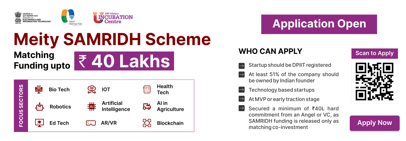 The Government of India has launched a comprehensive initiative to foster innovation and support start-ups through its Startup Accelerator of MeitY for Product Innovation, Development, and Growth (SAMRIDH) program, addressing the need for an accelerator program that drives social impact and scales solutions for India’s challenges. The program aims to support 300 tech Start-Ups in 3-year duration with cohort size of 5-10 Start-Ups.
